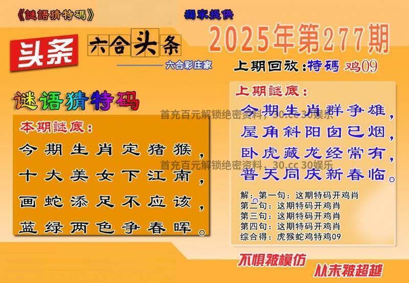 277期:单双两肖『双肖+猪鸡』开:虎16准 |