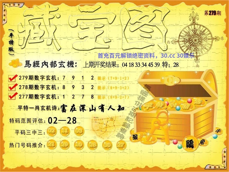 279期:平特藏宝玄机:【富在深山有人知】 推荐平码:21.29.10.28.30.27 |