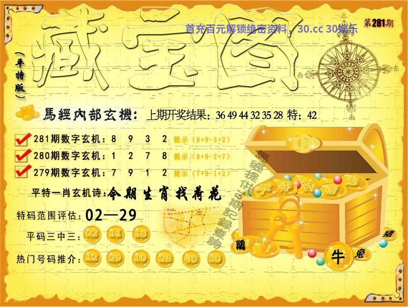271期:平特藏宝玄机:【上期夫人找秀才】 特码范围评估:01-30 |